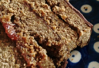 Szarlotka na spodzie z orzechów (plus kilka dodatków) z masą jabłkową z dodatkiem gruszki i cynamonu prezentuje się całkiem smacznie. Na wierzchu posmarowałam szarlotkę bananowo-daktylową masą i posypałam płatkami migdałowymi.